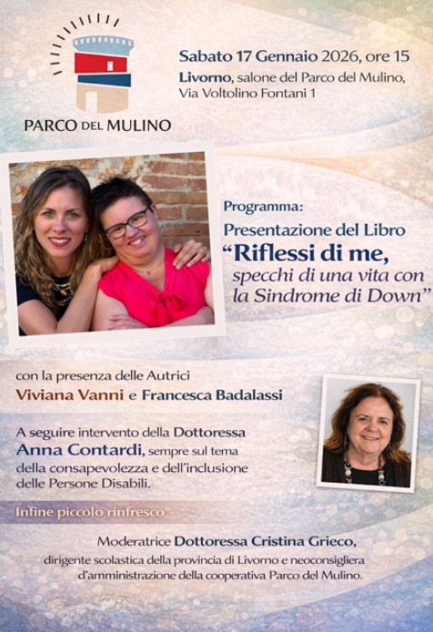 Sabato 17 gennaio 2026, alle ore 15:00, presso il salone del Parco del Mulino di Livorno (Via Voltolino Fontani, 1, 57100 Livorno) si terrà la presentazione del libro “Riflessi di me” di Viviana Vanni e Francesca Badalassi. Per visualizzare la locandina clicca qui.